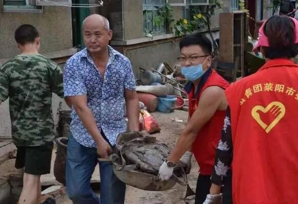 8月5日“海棠”过境,我市部分地区发生洪涝灾害,灾情牵动了全市人民的心。为积极支持受灾地区群众灾后重建,莱阳团市委充分发挥团员青年的生力军和突击队作用,组织武警战士以及梨城春雨、梨乡星等志愿服务团体,共计120余名青年志愿者深入城厢街道枣行村救灾一线,积极参与灾后垃圾清理、爱心慰问等工作,橄榄绿、团旗、团徽、红马甲成为灾后救助一线的一抹温暖。