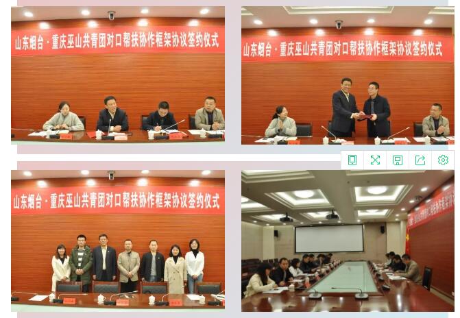 当天上午,在巫山县党政大楼会议室举行了两地共青团合作交流座谈会,共青团烟台市委与共青团巫山县委共同签订了“烟台共青团-巫山共青团对口扶贫协作框架协议”,就两地少年宫项目合作、烟台项目赴巫志愿者服务工作情况进行了亲切交流。通过签订“对口扶贫协作框架协议”,架起了两地沟通的桥梁,为两地共青团发展合作起到重要作用。