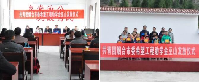 下午,烟台市希望工程办公室谷勤海同志来到巫山县铜鼓镇竹园村,看望慰问了该镇困境儿童,并向20名巫山困境儿童捐赠了每人1000元共计2万元的助学金。最后,巫山团县委书记杨本君同志代表巫山共青团,向团烟台市委、烟台希望工程办公室对巫山困境儿童的倾力资助表示了诚挚的感谢,他勉励受助儿童要心怀感恩、勤奋学习、争取早日成才,长大后用自己的双手建设家乡回报社会。
